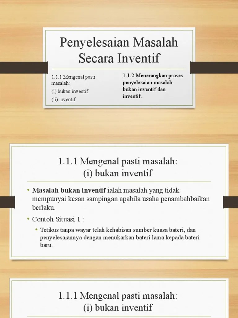 Masalah inventif ialah masalah yang mempunyai masalah bukan inventif contoh. Penyelesaian masalah inventif & bukan inventif · oleh g94365310 ;